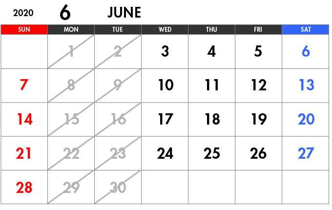 6月の営業日のお知らせ